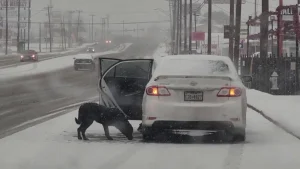 On a desolate stretch of highway, a fragile, frightened dog sprinted through the traffic, darting from car to car as if searching for something—anything—to give her the hope she so desperately needed. Her small frame trembled in fear, each passing vehicle a blur of uncertainty. But then, there was Claire. Amidst the chaos of speeding cars, Claire’s presence stood still, like a beacon of calm. She stopped her car, stepped out, and waited, letting the fear-stricken dog approach at her own pace.