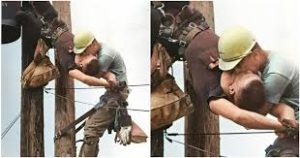 But in the face of tragedy, his coworker and close friend, J.D. Thompson, refused to give up. Without hesitation, J.D. climbed the pole to where Randall lay unconscious, pressed his lips to Randall’s, and began performing mouth-to-mouth resuscitation—dozens of feet in the air, on the crossbar of the utility pole. His determination never wavered as he fought to save his friend, continuing until paramedics arrived on the scene. 🚑💓