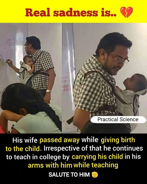 This father lost his wife during childbirth, leaving him to raise his young child alone. Despite the heartache, he embraced both roles—parent and educator—with unwavering commitment. Each day, he brings his child to the classroom, balancing the responsibilities of teaching with the tender care of parenthood. He manages lesson plans and student needs while nurturing the emotional well-being of his own child—a feat that leaves colleagues, students, and strangers alike in awe.